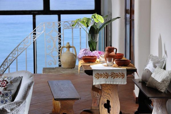 Elegantes Appartment auf 2 Ebenen in den Felsen hineingebaut und direkt über dem Meer. Im Herzen der schönen Altstadt Tropeas, gleich in der Nähe befinden sich viele kleine Geschäfte, Restaurants und Strassencafes.