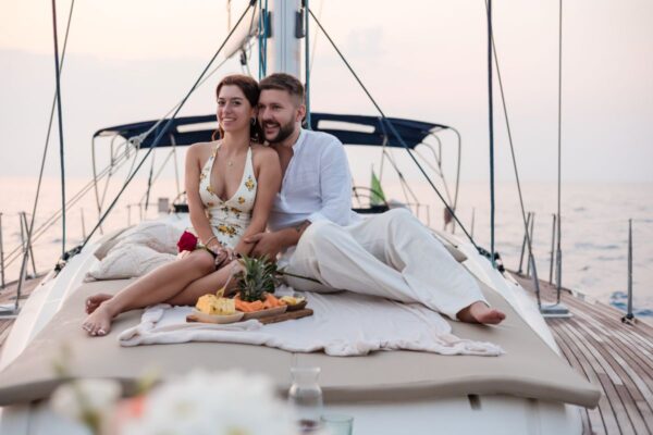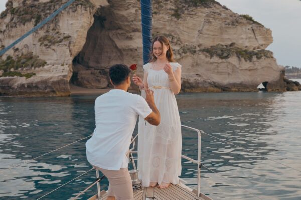 Auf dem Segelboot: Umgeben von Kristallklarem Wasser, versteckten Buchten und Panoramen wie aus dem Bilderbuch, begleitet von einem erfahrenen Skipper – für einen Antrag voller Freiheit und Abenteuer.
