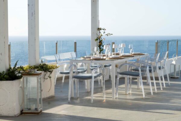 Das einzigartige charmante Pool mit Panoramablick auf das Meer bietet Ihnen die Möglichkeit so richtig zu entspannen. Das Resort bietet auch eine Bar und ein Restaurant, einen Privatstrand und eine malerische Terrasse mit Blick auf die Küste, ideal für Veranstaltungen und Bankette.