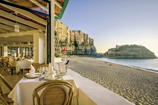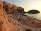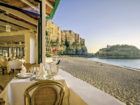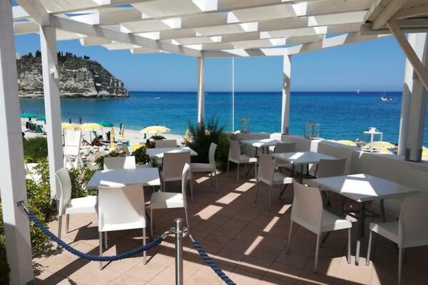 Die Ferienanlage verfügt über eine perfekte Lage. Ausblick auf den wunderschönen Strand von Tropea und auf die Insel.Am Meer, mit Blick auf Stromboli, direkt unter der Altstadt Tropeas, zwischen Grün und einer Felswand der Klippe S. Leonardo, befindet sich das Le Roccette Mare.
