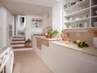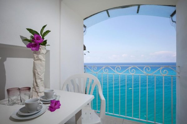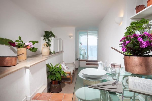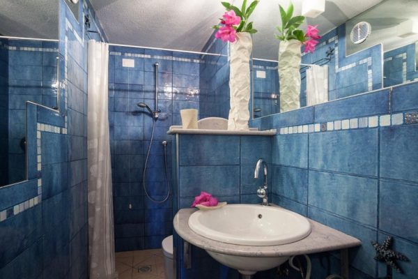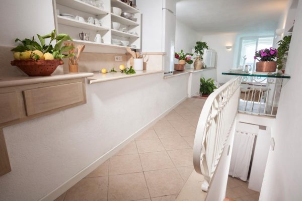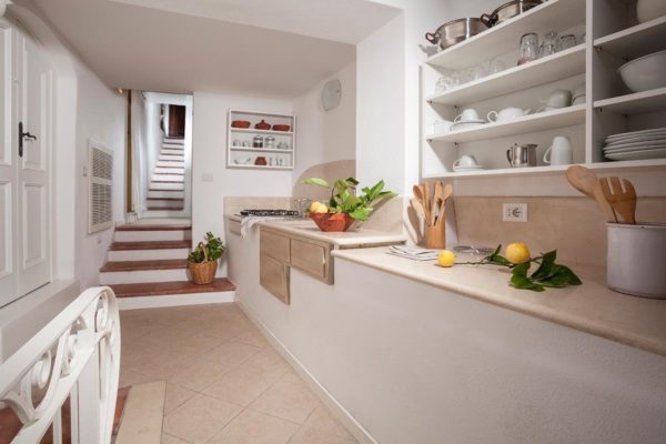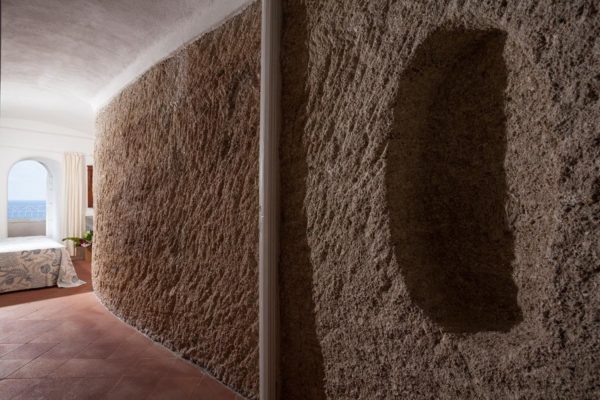 The furniture is done in light wood and terracotta in which are in harmony with the natural colors of the rock and sea.
