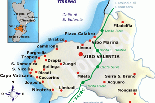 Capo Vaticano is situated at about 8 km from Tropea. The coastline is called “Costa degli Dei” – Coast of the Gods and is famous for its beautiful beaches and clear waters.