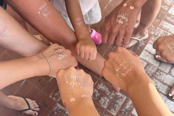 Per rendere l’atmosfera ancora più divertente e coinvolgente, includiamo gadget esclusivi per il gruppo: cappellini “Team Bride” / “Team Groom” e occhiali da sole coordinati, perfetti per le foto e per entrare subito nello spirito della festa!