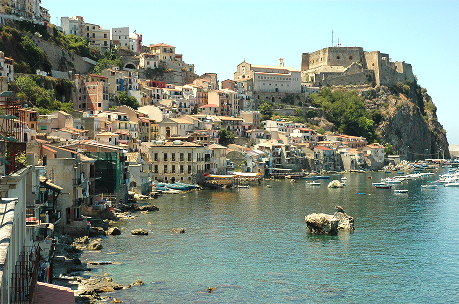 Scilla, località dove il mito, sembra vivere ancora. Dall’alto del Castello dei Ruffo di Calabria si domina la Costa Viola e la splendida spiaggia di marina grande.