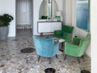 I ricordi riaffiorano, le immagini si rincorrono tra le arcate vetrate, sui pavimenti in gettato veneziano, attraverso le sfumature cromatiche e gli arredi minimal, in un turbinoso rimando ai favolosi anni Cinquanta.