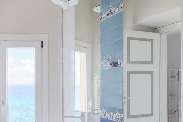 SUITE CON VISTA MARE La Suite “Acqua e Sale” rappresenta il fiore all’occhiello di Palazzo Mottola: 48 metri quadri sul mare, letto king size, preziosi pavimenti in ceramica di Vietri che riflettono il sole e il mare, il bagno con doppio lavandino e doppio affaccio, il lussuoso living ed i preziosi arredi renderanno il Vostro soggiorno indimenticabile.
