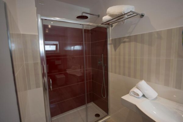 AMARANTH ROOM Tripla ComfortLa camera tripla confort di 26 mq, è ubicata al primo piano e si affaccia sul giardino della villa. Improntata ad uno stile moderno e lineare si contraddistingue per la sua atmosfera gradevole e accogliente accentuata dalle tenui sfumature del tortora in armonia con l’insieme degli arredi. La camera è dotata di un comodo bagno con finestra, completo di bidet, ampia doccia, phon, chiamata d’emergenza e set di cortesia.
