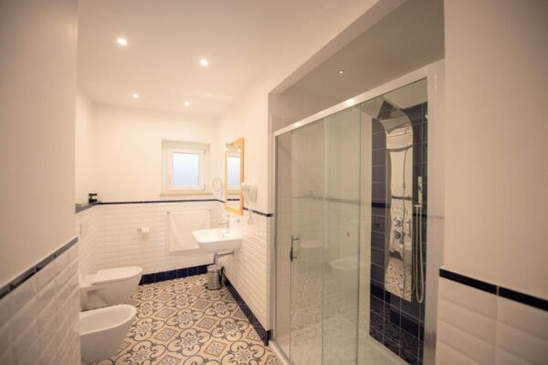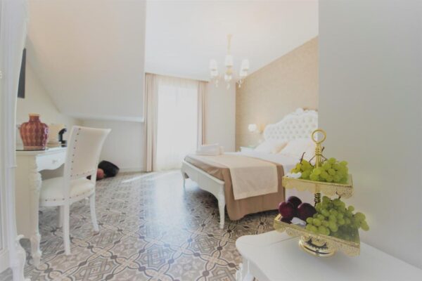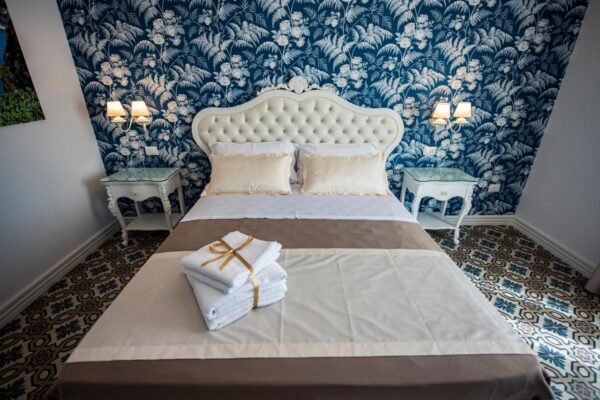 Camere Superior: combina il comfort di un ambiente elegante e moderno con una splendida vista sulla città vecchia o sul mare. Arredata con tonalità calde e luminose, è perfetta per un soggiorno all’insegna del relax, ma a due passi dal centro di Tropea.