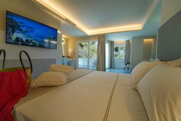 Tutte le stanze sono matrimoniali, con la possibilità di aggiungere uno o due letti e farle diventare triple o quadruple. Potrete inoltre scegliere tra camere con balcone e camere con finestra.
