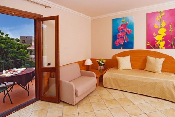 Costruito nel pieno rispetto dello stile eoliano, dispone di camere dotate di ogni confort che possono ospitare da 2 a 4 persone. Ciascuna camera è dotata di ingresso proprio, di patio o balcone, TV, aria condizionata, cassaforte, servizi in camera, telefono. Il trattamento offerto è di tipo alberghiero e comprende pulizia giornaliera, biancheria da letto e da bagno e prima colazione, offerta nell’accogliente terrazza della hall. La vicinanza al centro e al porto,raggiungibili a piedi attraverso un caratteristico vicolo, rende agevoli gli spostamenti, senza dover ricorrere all’utilizzo dei propri mezzi che possono sostare gratuitamente nell’ampio parcheggio della struttura.