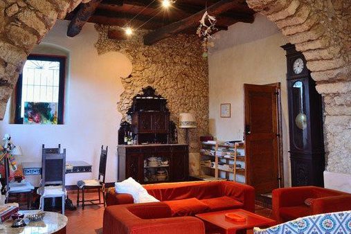 Archi di pietra, all’interno, incorniciano antichi soffitti con travi di legno, mobili d’epoca si accompagnano a confortevoli e colorati divani moderni. Le stanze sono un gioiello della memoria: sembra di vivere, con tutti i confort, nella dimensione magica di un passato elegante e raffinato. La terrazza con vista mare, il parco giardino, il profumo dei limoni, il canto degli uccelli, la varietà colorata dei fiori, rendono unica l’atmosfera di questo luogo fresco e ventilato per l’aria di collina e vicinissimo ad un mare incantevole.