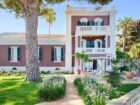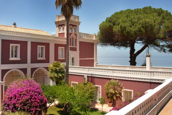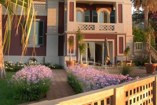 La villa nel suo insieme è costituita da un continuo alternarsi di giardini su più livelli con prati all’inglese, piante spettacolari, con un secolare Pino marittimo maestoso sulla terrazza esterna che delimita la fronte dell’edificio verso il mare con palme e verde ornamentale.