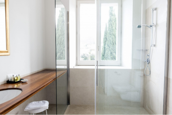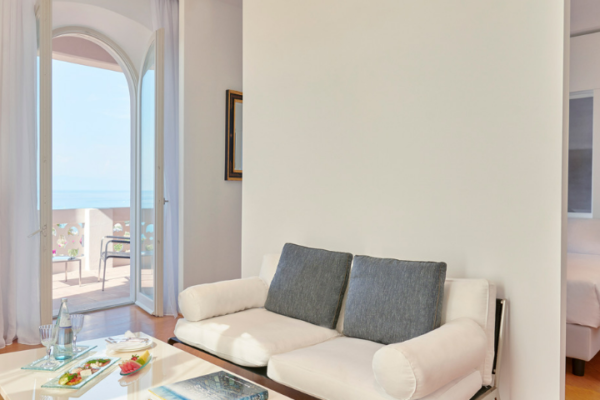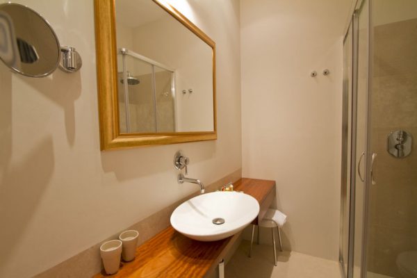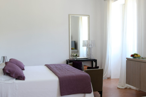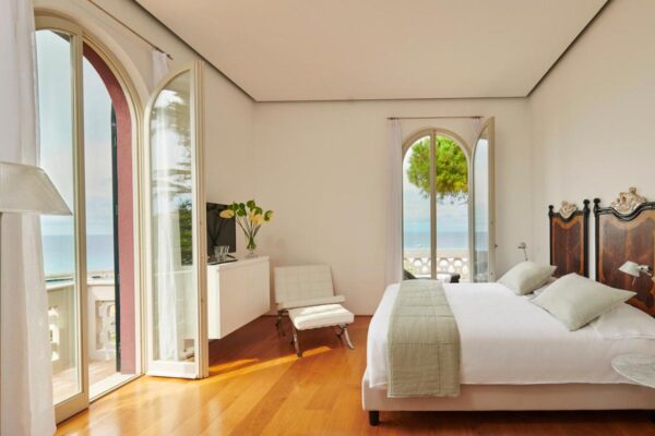 La soluzione più particolare ed esclusiva della villa è senza dubbio la Suite dell’Eremita. Un appartamento con grandi vetrate di tre ambienti separati più bagno con doccia walk-in, doppio lavandino e bagno turco privato in vero mosaico. L’ingresso si apre su un’elegante zona living con salottino, a seguire una camera da letto matrimoniale con cabina armadio e infine una luminosissima veranda arredata. L’arredamento minimal e di design è riscaldato dalle travi in legno al soffitto e dal pavimento in cotto. Affacciandovi dalle grandi finestre potrete ammirare l’autentico chiostro del XVIII secolo e sullo sfondo il mare azzurro di Tropea. Uno spazio privilegiato per lasciarsi coccolare immersi nella serenità che avvolge l’hotel.