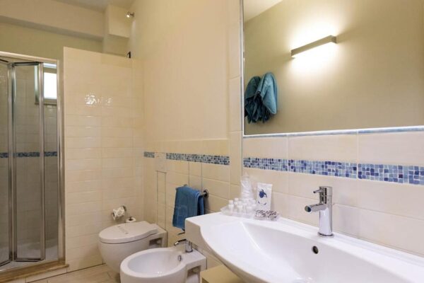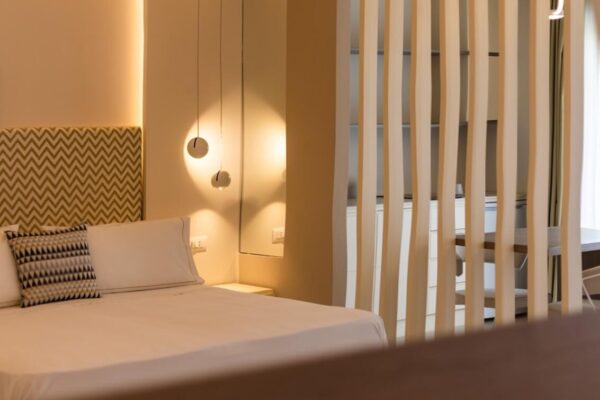 Le camere vantano una zona notte con un’ampia camera con letto matrimoniale e 1 o 2 letti singoli, un bagno con un grande box a doppia doccia. L’ambiente che più le differenzia e le rende dinamiche è l’angolo snack della zona giorno, una piccola isola attrezzata per concederti veloci/easy pasti ed essere più libero di gestire il tempo a tuo piacere. Il tutto si apre su una comoda veranda circondata dal nostro giardino mediterraneo.