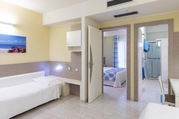 Desideriamo solo il meglio per le famiglie che ci scelgono per le loro vacanze. Per questo, le nostre Camere Quadruple Comfort offrono dotazioni di alta qualità, forniture di livello e servizi di ultima generazione.