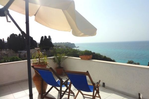 Appartamento in zona panoramica a Tropea, con splendida terrazza vista mare. La casa si trova a soli 10 minuti a piedi dal centro storico di Tropea e a 300 (scalinata) dalle principali spiagge di Tropea.