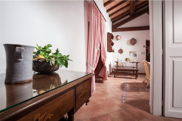 Gelsomoro è un’appartamento da 4 posti letto, suddivisi in due ampie camere, salotto, cucinetta e bagno (con doccia), si trova al primo piano del casale con finestre su tre lati e affaccio sul giardino. Luminoso e ventilato, è arredato in stile tipico campagnolo e intravede da alcune finestre il mare all’orizzonte.