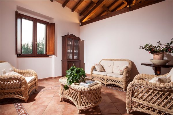 Luminoso e ventilato, è arredato in stile tipico campagnolo e intravede da alcune finestre il mare all'orizzonte.