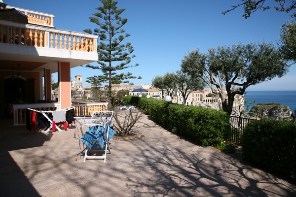 Mansarda in zona panoramica a Tropea, con vista sulla splendida roccia dove troneggia la Cattedrale Normanna. Di fronte si può vedere lo splendido Porto Turistico e il suo mare cristallino e a destra il Golfo di Sant’Eufemia.