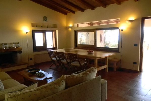 L’abitazione è stata costruita con l’impiego di materiali eco compatibili, con assenza quasi totale di plastica e derivati. La sua struttura, totalmente in pietra, si inserisce in un contesto naturale unico, la villa si sviluppa su un solo livello, ed è dotata di ampio salone ben fornito con Tv, divani, camino e tavolo da pranzo. Dal salone si gode una spettacolare vista mare, mentre l’angolo cottura in muratura con forno e lavastoviglie è molto funzionale. Dispone di tre camere da letto matrimoniali convertibili in letti singoli e due bagni con doccia.